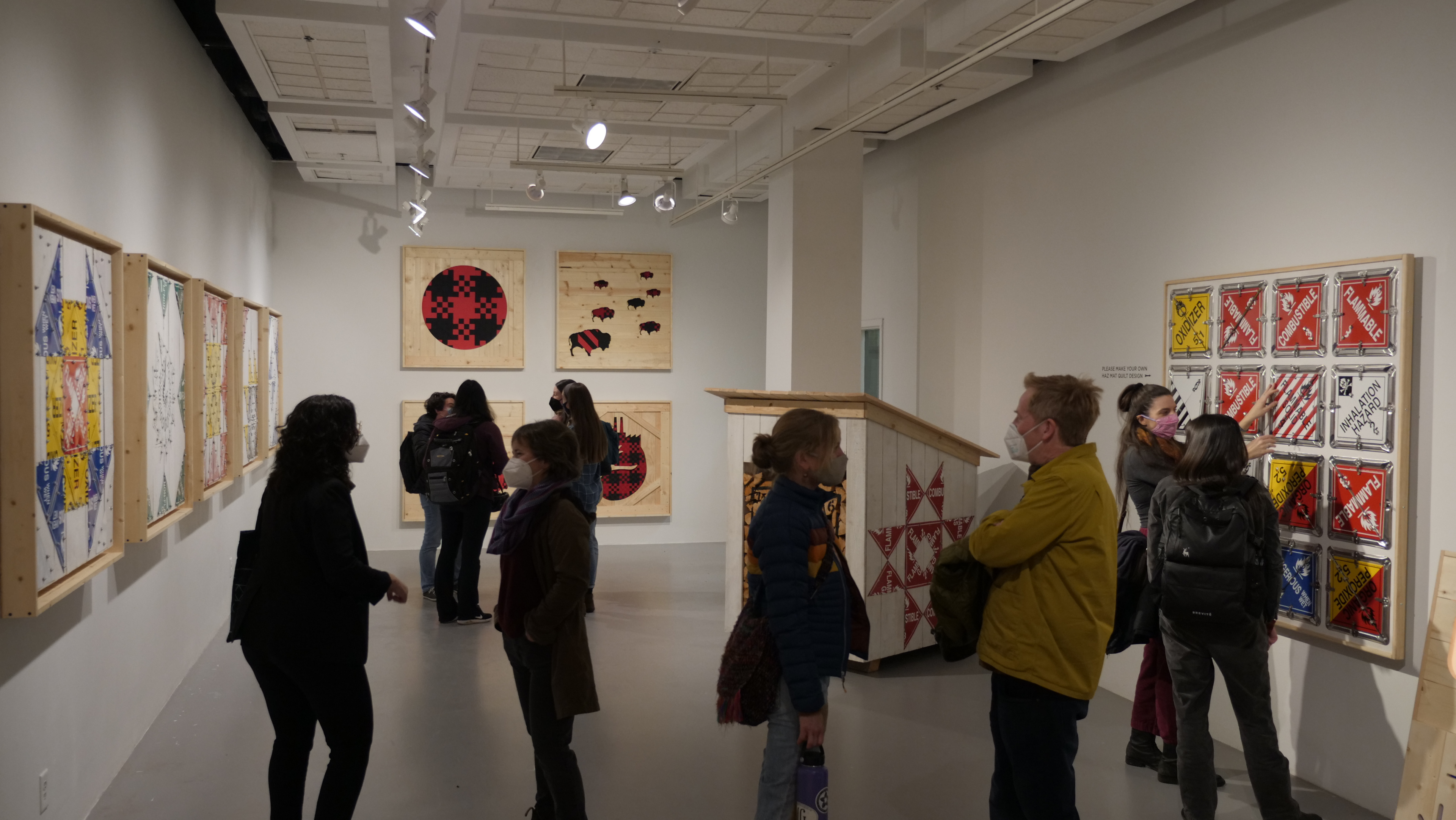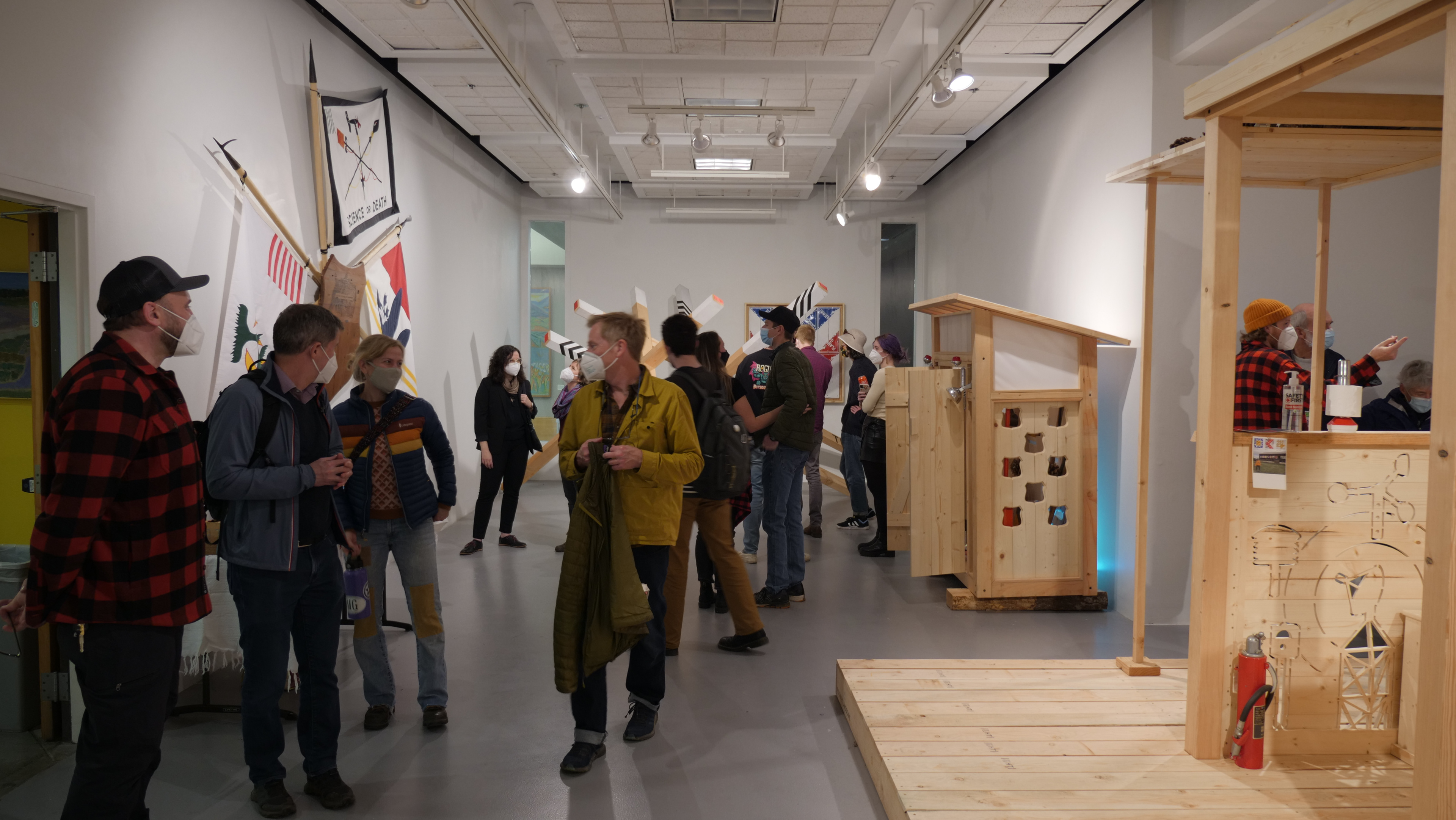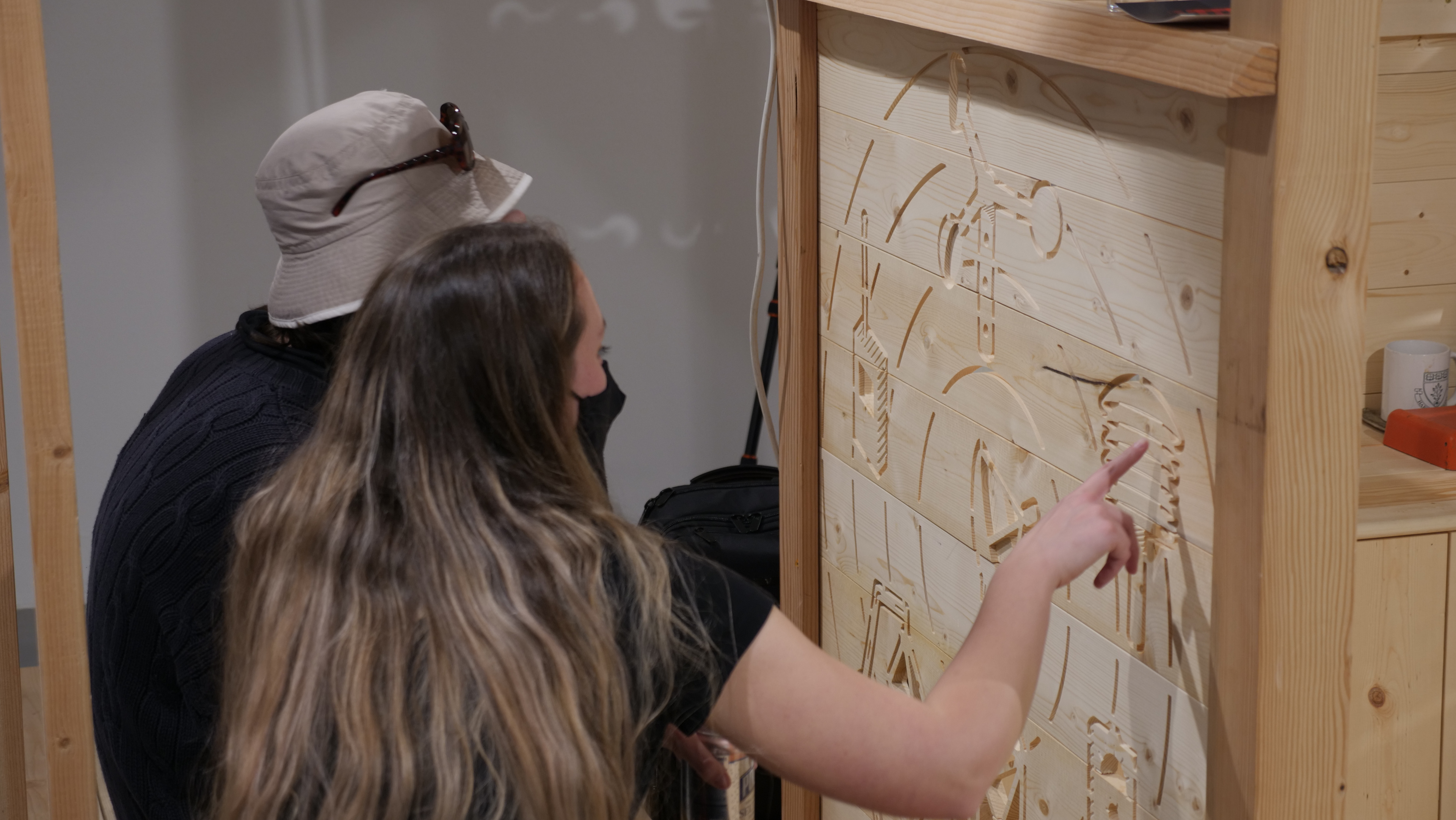 University of Oregon graduate students note the CNC routing during an exhibition presented at the gallery.