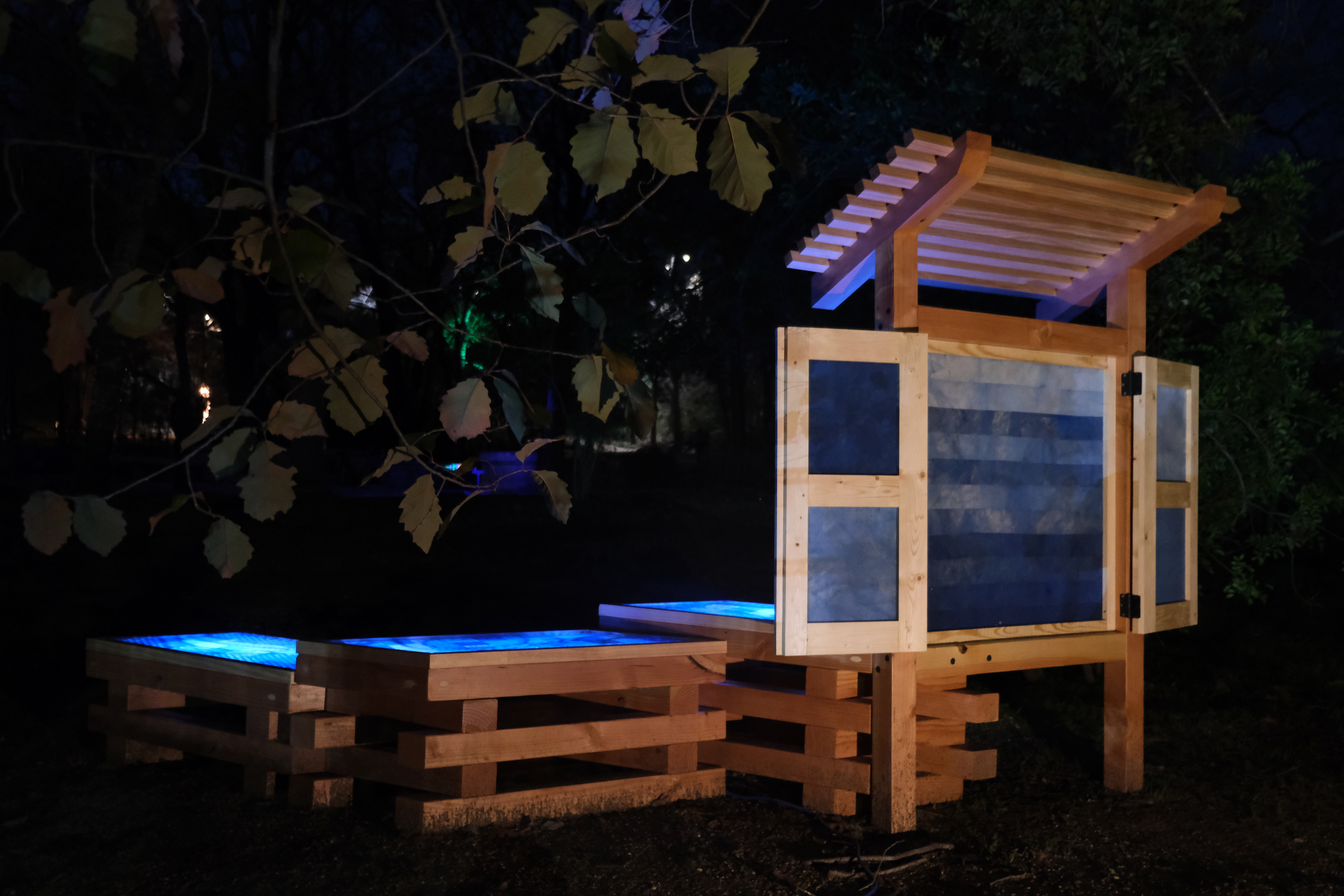 The Meander (River and Information Gauging Station) serves as a community resource, fostering engagement with the ecological, historical, and recreational narratives of Texas’ Colorado River. Inspired by the river’s sinuous yet stunted meanders, the stepped design reflects the human interventions that have shaped its modern course. The kiosk is sited near the point where Barton Creek flows into the Colorado River at the Umlauf Sculpture Garden. Designed to activate this space at night, the installation encourages active participation, inviting visitors to contribute visuals, objects, and writings about the river.